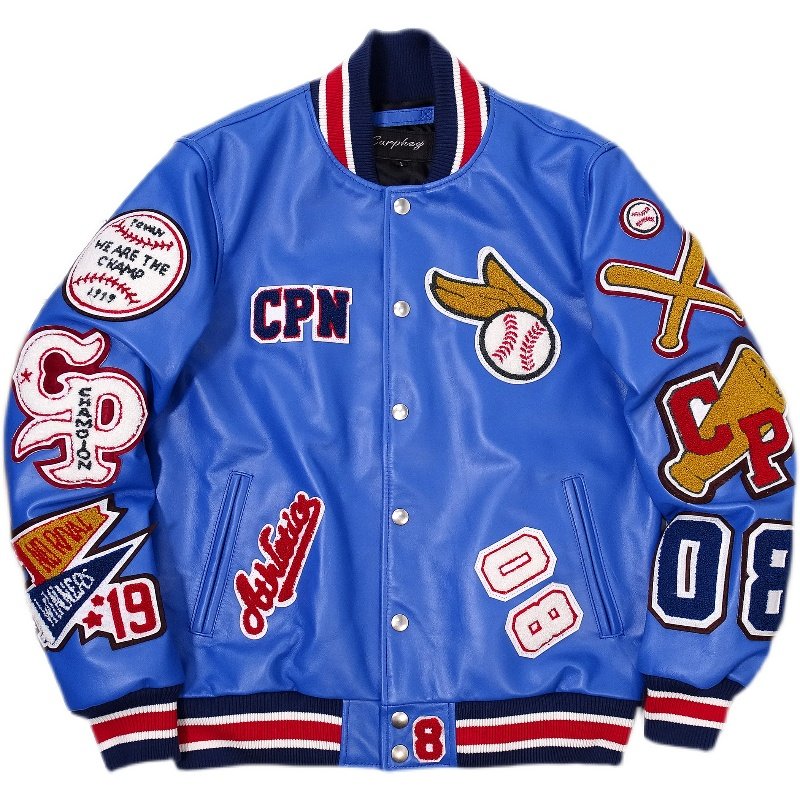 Men's and women's same top-layer cowhide heavy industry embroidery multi-standard baseball uniform leather jacket leather jacket tide