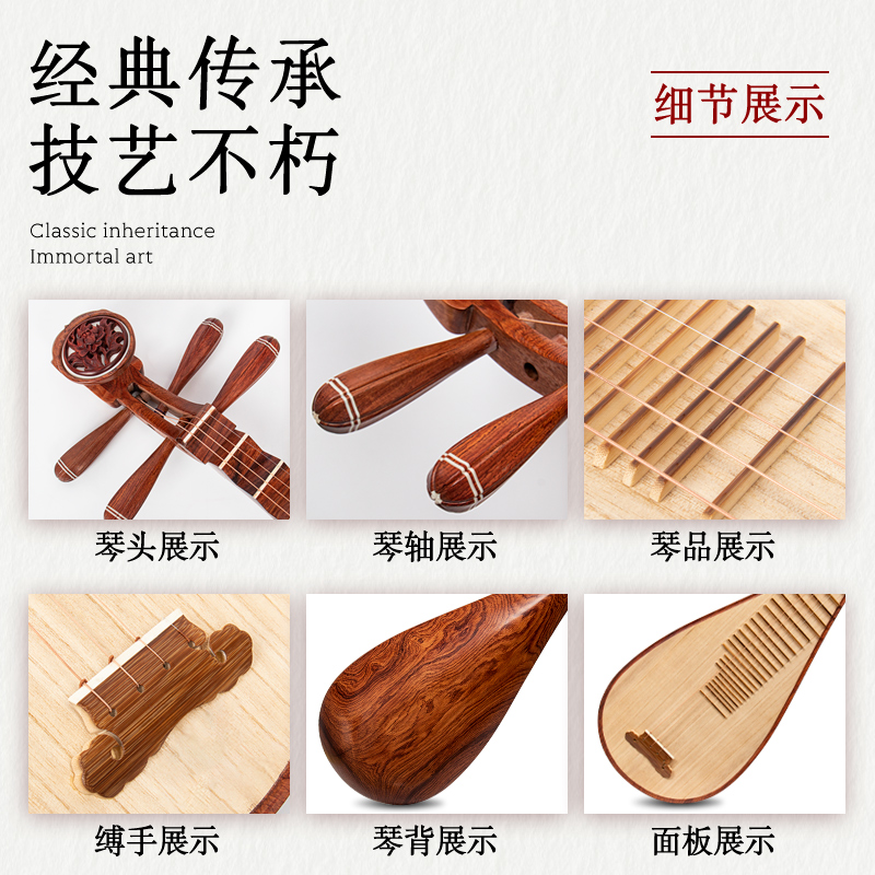 Yihai rosewood pipa musical instrument beginner entry adult mahogany pipa piano easy to learn to play pipa musical instrument