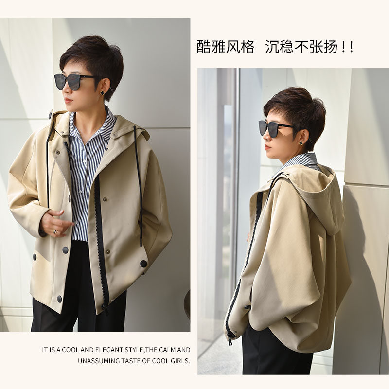 Cool Elegant Style Recommended Single Bestseller Custom Autumn winter Leisure Short Bat Sleeve Windcoat Jacket Woman