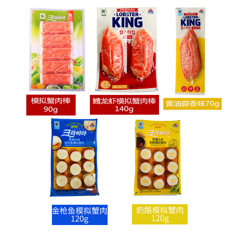 Cod Lobster Mock Crab Meat 140g*20 Bags Cod Lobster Mock Crab Meat Butter Garlic Flavor 70g*40 Bags Cheese Mock Crab Meat 120g*20 Bags Tuna Simulated Crab Meat 120g*20 Bags