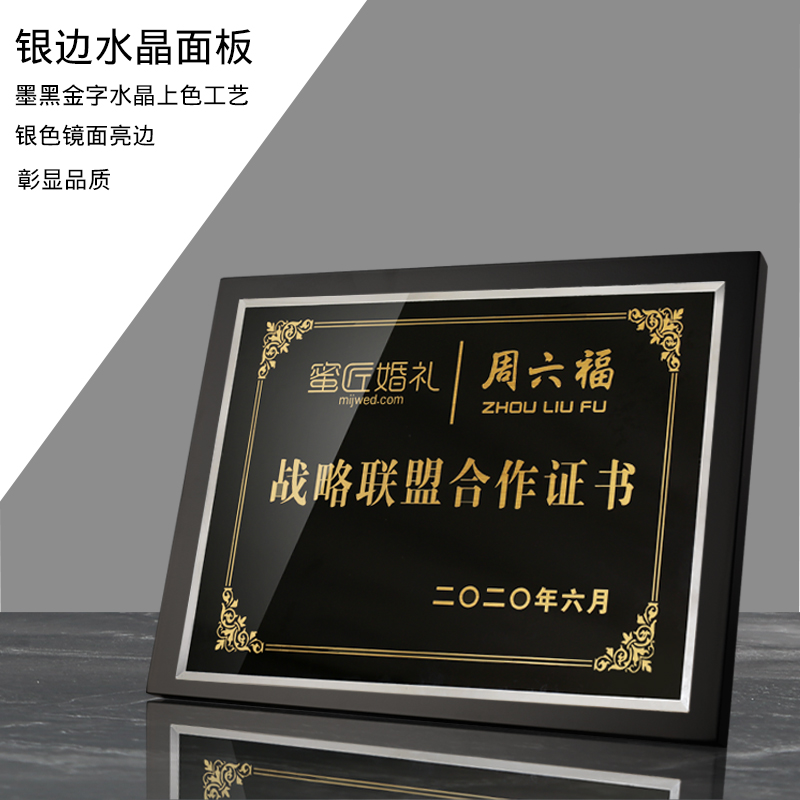 Solid wood log stainless steel titanium alloy metal crystal color printing medal enterprise company chamber of commerce alliance franchise license