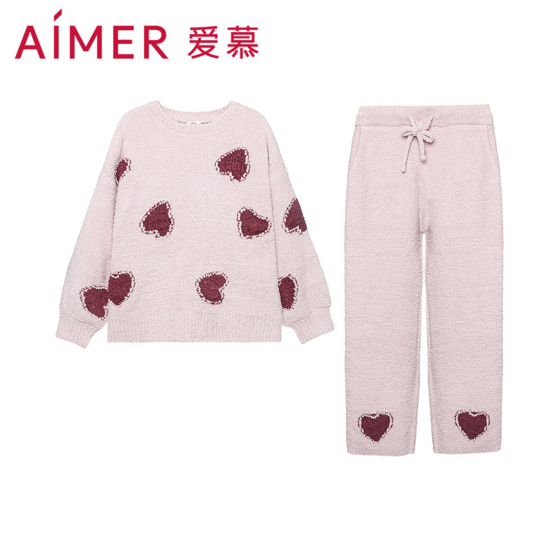 AIMER Official Mianmian Winter Lady Pyjamas Long Sleeves Long Pants Thickened Warm-fit Body Suit AM466801