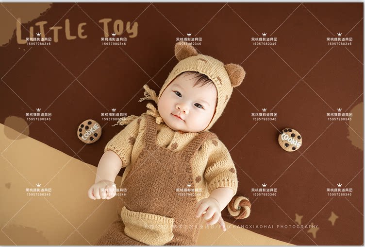 Cookie Hundred Days Complete Set of Cookie Clothes Two-piece Hat Dark Coffee Milk Cotton 1 75*2 Meters Camel Milk Cotton 1 75*2 Meters Wool Felt Cookies 4