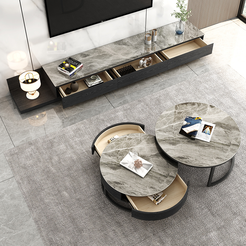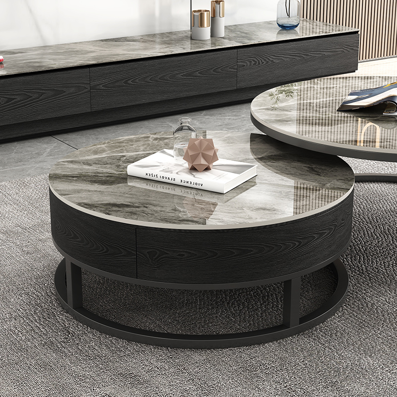 Glossy round slats retractable coffee table small apartment storage light luxury modern simple office sense nordic style