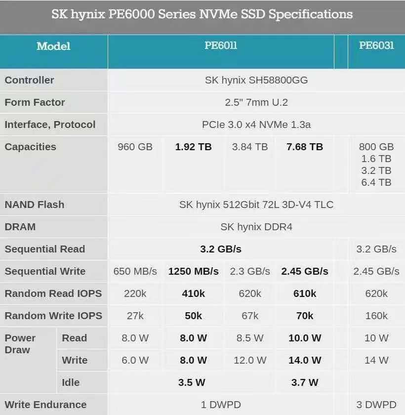 Hynix PE6011 7 68T U2 U 2 Solid State Drive SSD 1DWPD TLC