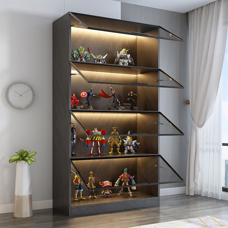 Model model display cabinet glass door solid wooden Lego statue display cabinet contains storage custom hydraulic bookcase