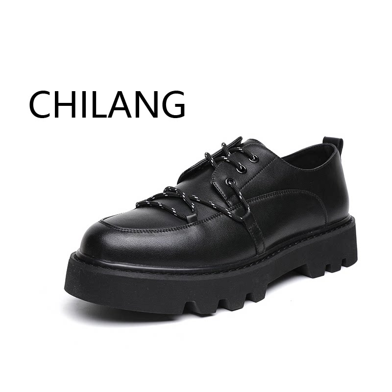 Casual leather shoes men's spring and autumn styles trendy thick-soled students soft-soled Japanese suits with heightened round toe teenager men's shoes
