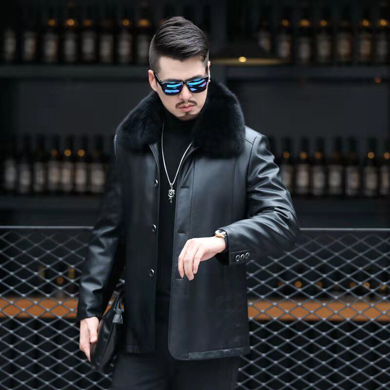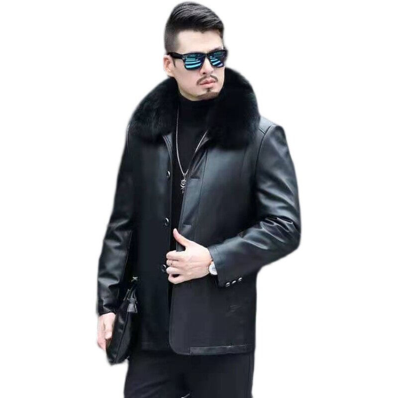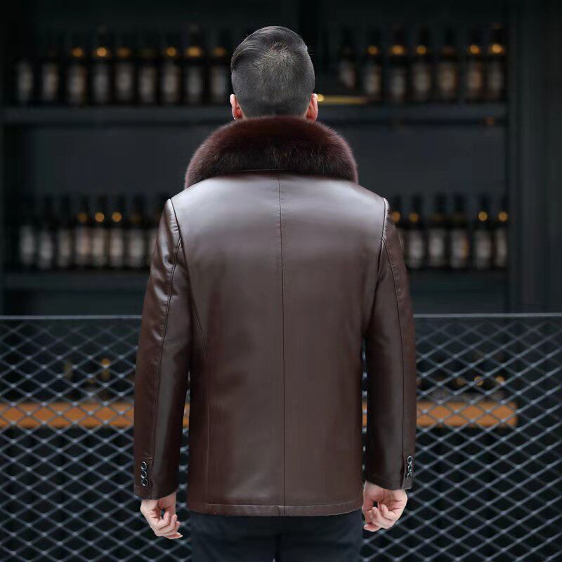 Real leather down jacket male hair collar detachable liner thickened loose middle-aged leather jacket daddy winter clothing leather jacket