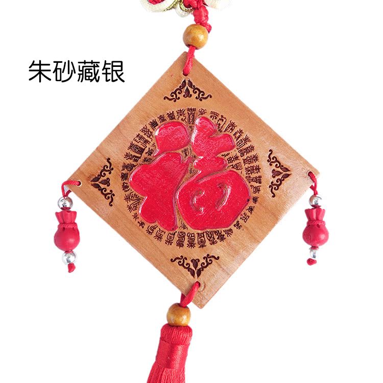 Peach Wood Fu Character Pendant Decoration Living Room Wall Small Solid Wood car hanging decoration upscale gate into the family door