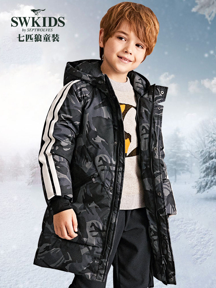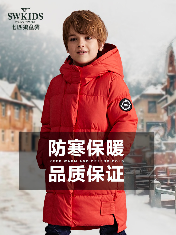 Seven Wolves Children's Down Clothes Middle Long Version Boy Thickened liner Child clothing CUHK Fairy Brand Coat