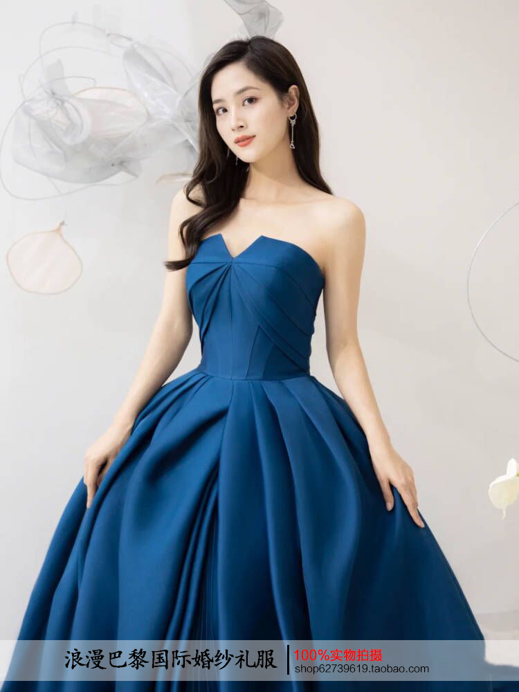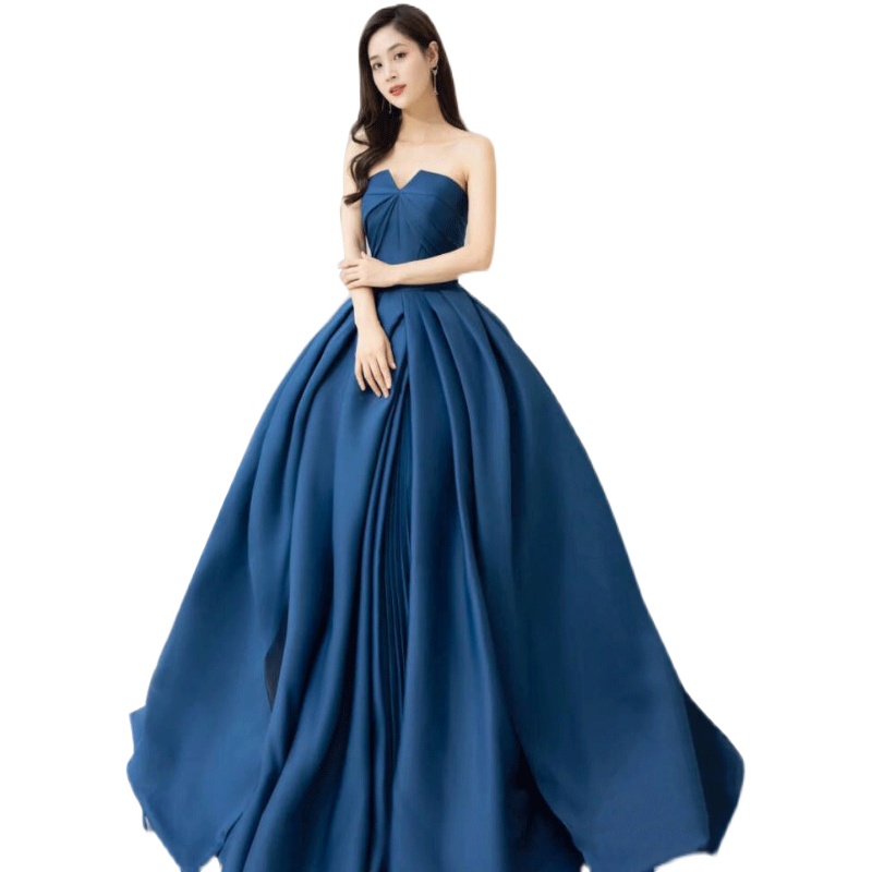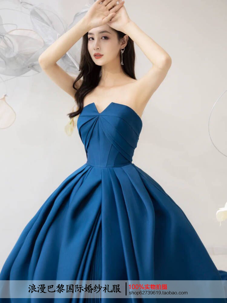 Blue Smear Wedding Dresses Dress 2023 Advanced Texture Wedding Gala Dinner Stage Performance Atmospheric Trailing Fluffy Dress Lady-Taobao