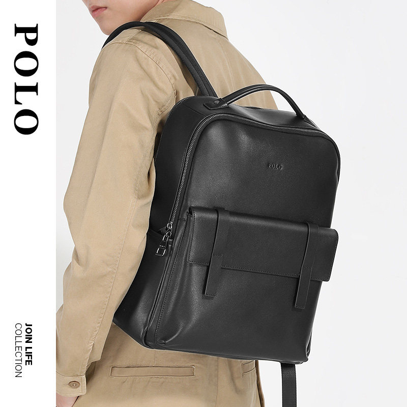 POLO Men's Backpack Genuine Leather Large Capacity Business Travel Leisure Travel Computer Backpack Fashion Leather School Bag