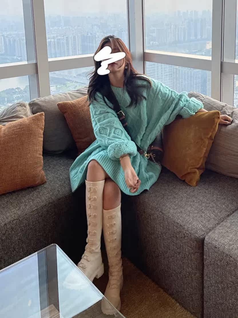 Pure college twist lazy wind large version pullover sweater female Japanese gentle thick needle autumn and winter mid-length knitted sweater