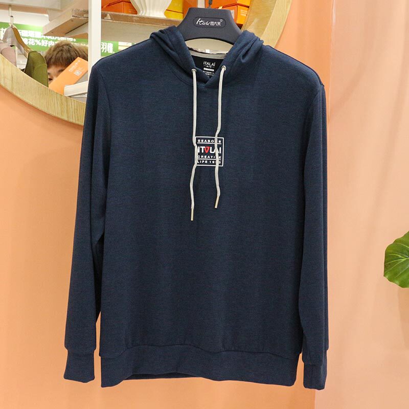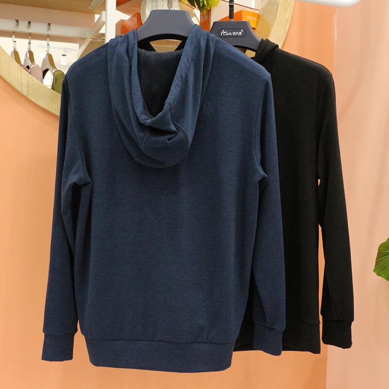 Italian Lai autumn and winter men's hoodie silk plus velvet thick cotton T long-sleeved solid color warm top 1674