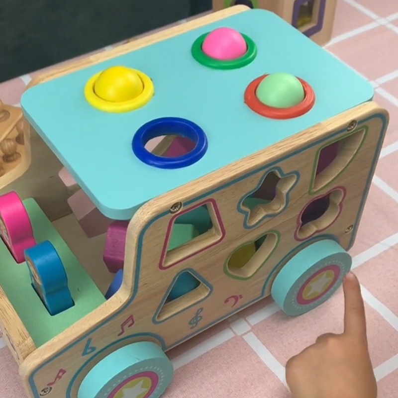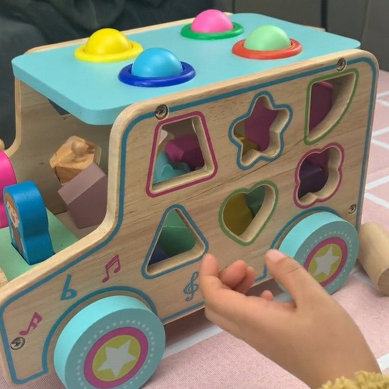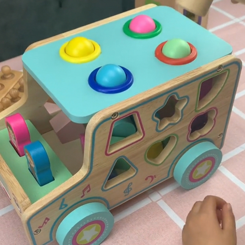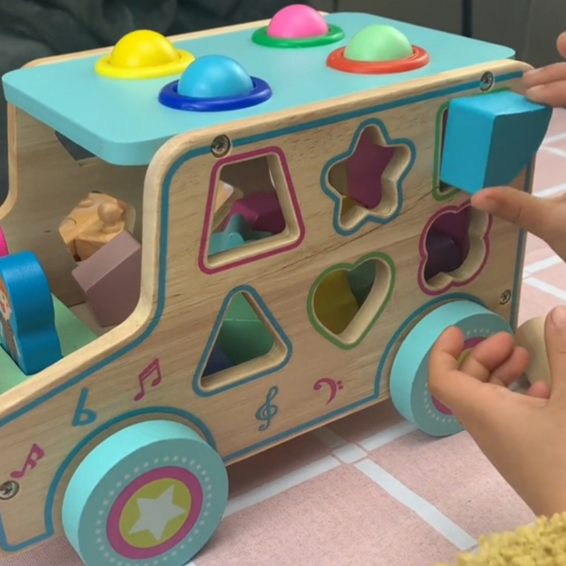 Wooden Children Digital Letter Pairing Cognition Multifunction Toy Car Push-and-pull Knocks to teach Puzzle Toys Early