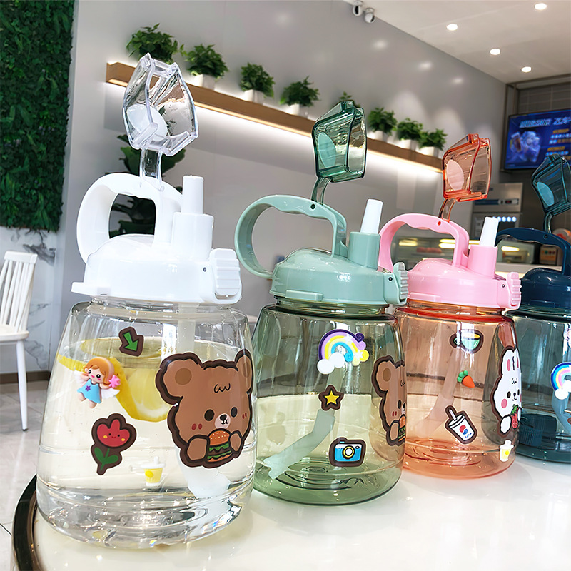 Net red big belly cup summer large-capacity portable baby bag water bottle children's straw drink cup water cup female student bucket