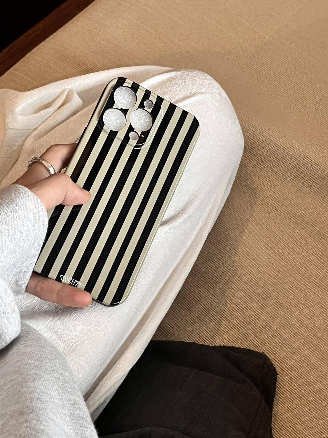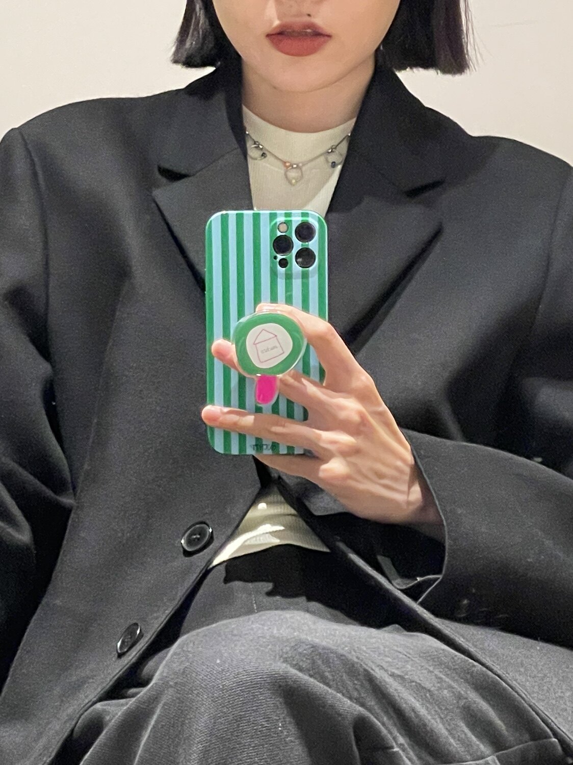 (Main push iphone13) autumn and winter fashion owner recommended temperament stripe color matching fine hole all-inclusive mobile phone Protective case