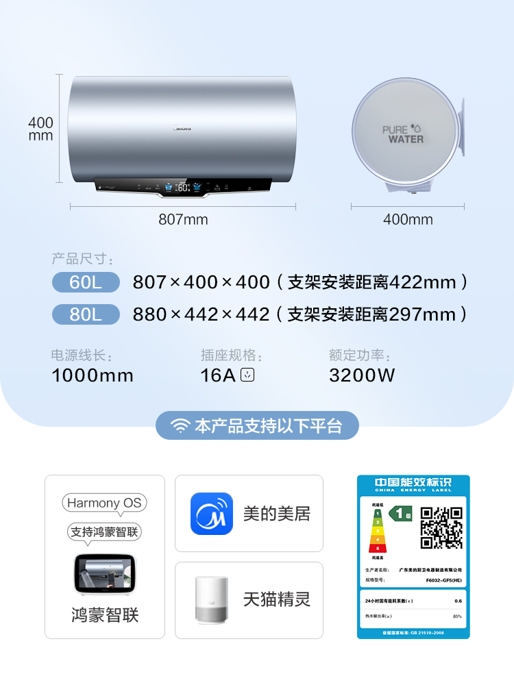 Mei's electronic magnesium rod 60 liters GF 5 water storage cleaning electric water heat electric water heat 80L