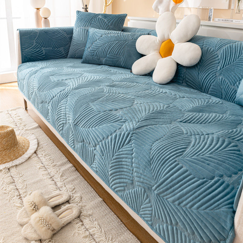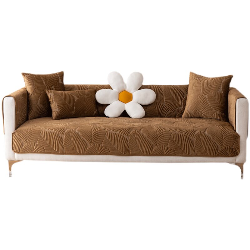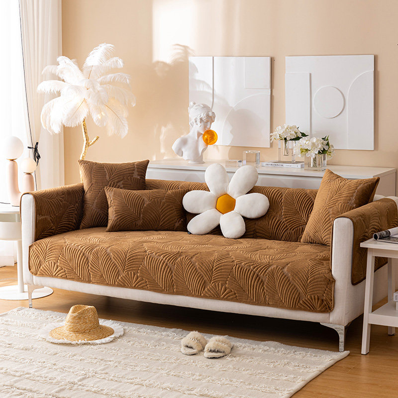 Simple modern plush sofa cushion non-slip cushion cloth solid color embroidery combination sofa cover full cover solid wood cushion