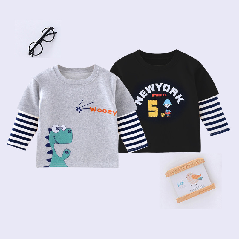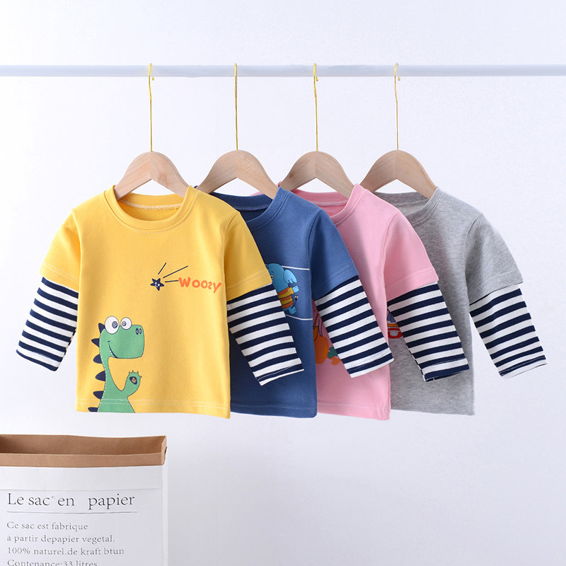 Baby Loose Casual Sleeve Sweater Boys Comfortable Western Style Top Girls Spring and Autumn Round Neck Cotton Underwear