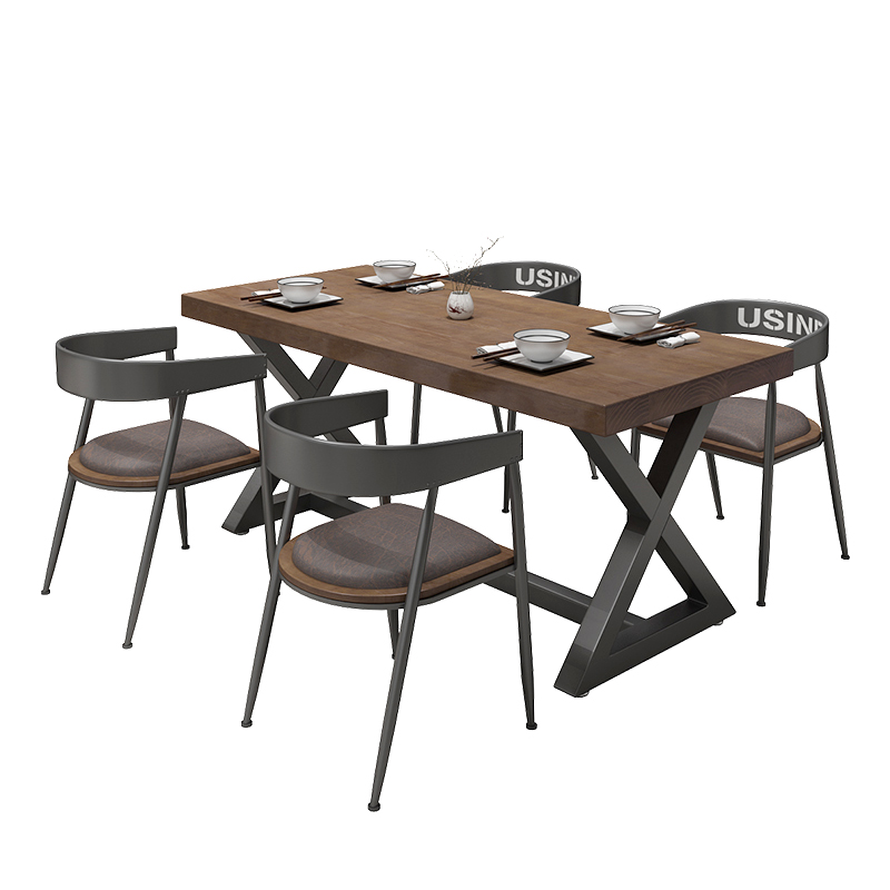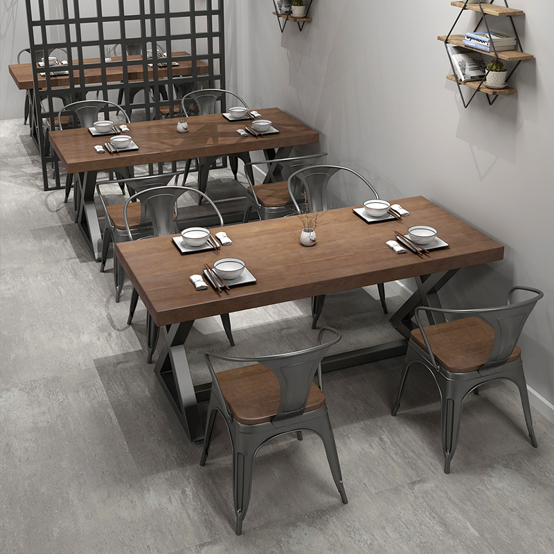 Retro bar table industrial style barbecue shop hot pot restaurant fast dining room music pub rectangular dining table and chair combination