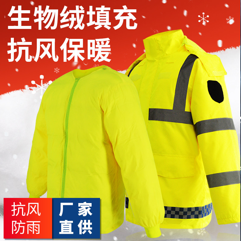 Traffic reflective cotton clothing winter thickened biological velvet cold-proof clothing high-speed duty cotton clothing road rescue safety clothing