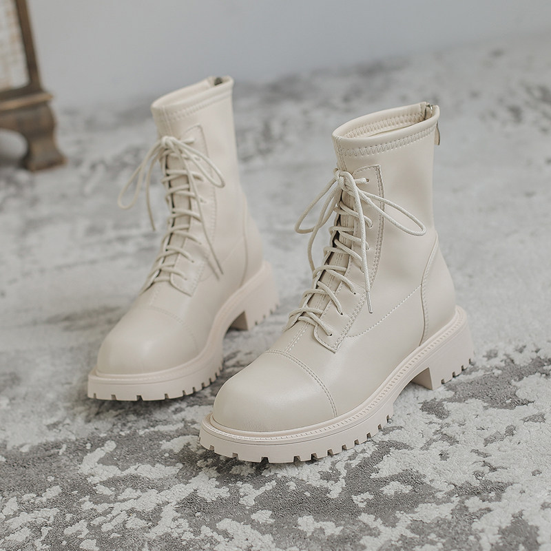 Ethnic Season White Martin Boots Autumn Winter Women's Single Boots 2021 Plus Suede Yingren Wind Midge Boot Thick Base Short Boot Boots