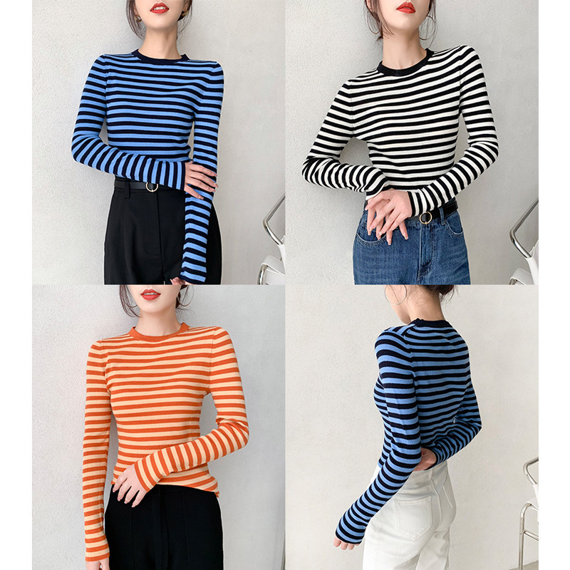 Ma's Jiamin Autumn Winter New Fine Spinning Ultrafine Wool Beating Undershirt Hooded Sweatshirt Striped Knitwear 3 Color Entrance