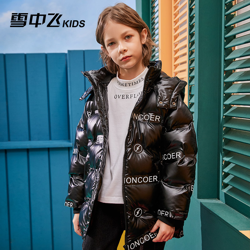 Snowflying children's clothing children's down jacket mid-length foreign style jacket boys middle-aged and older children's bright-faced thickened winter clothing