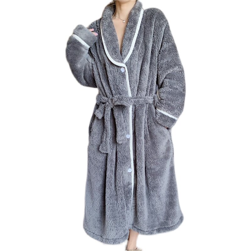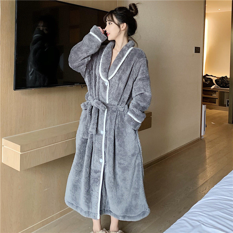 Pajamas women's autumn and winter thickening and long flannel bathrobe winter sweet cardigan coral fleece nightgown coat