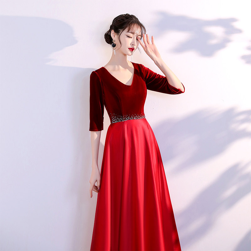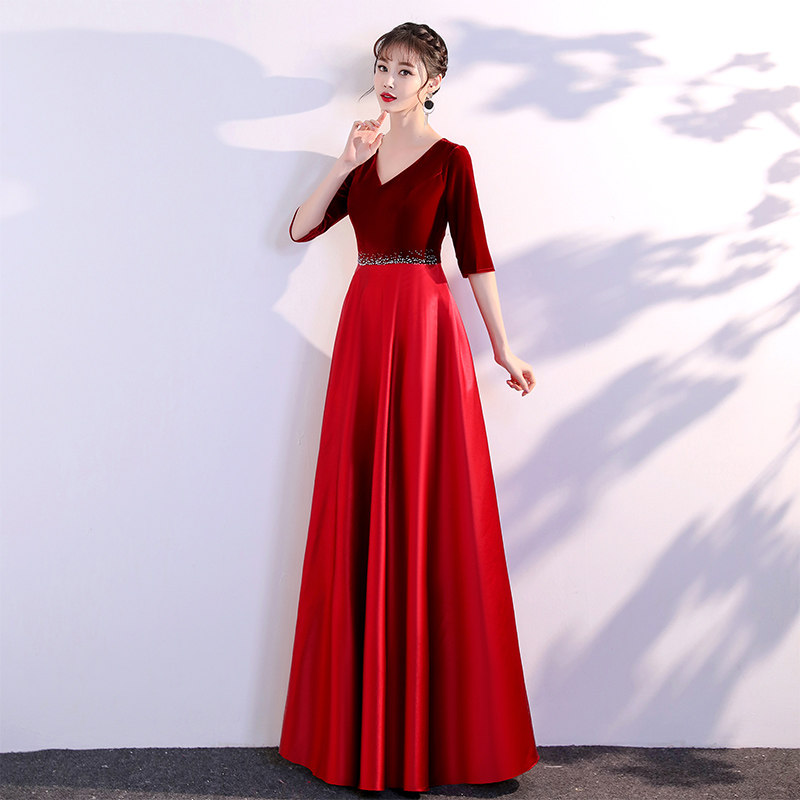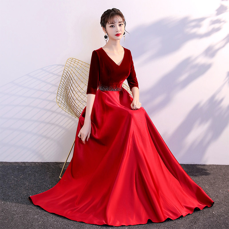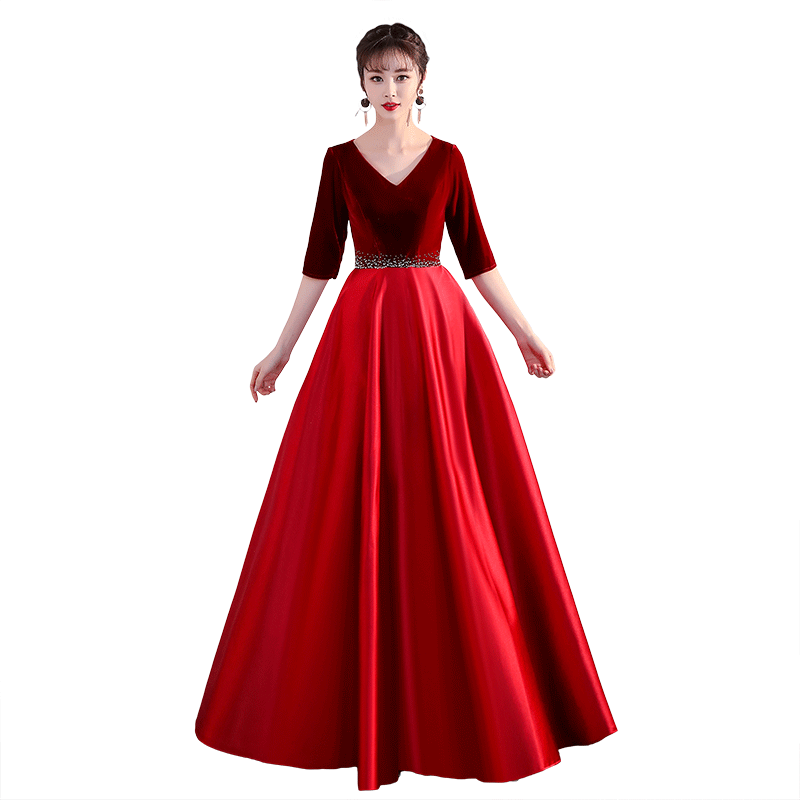 Cantata costumes female long skirt red song competition was thin recitation evening dress choir patriotic performance costumes