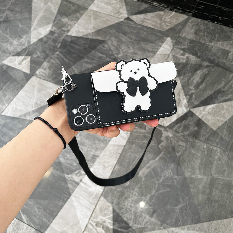 iphone 13 mobile phone case bow bear handbag