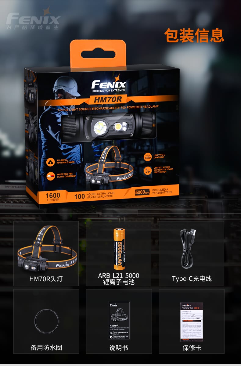 Fenix HM70R Night Fishing Headlight Spotlight Pan Pan Triple Light USB-C Charging Waterproof Strong Light 21700