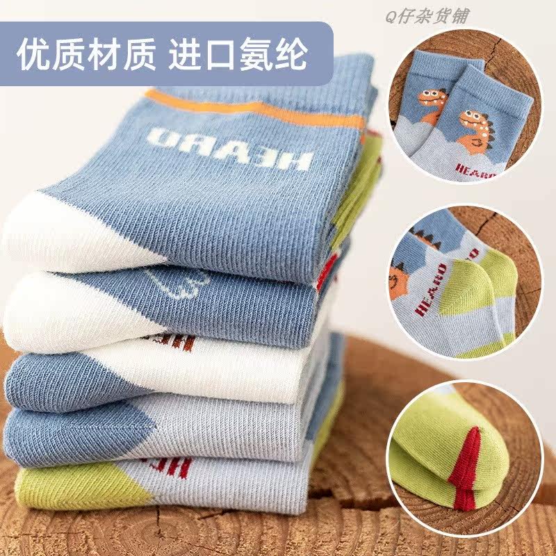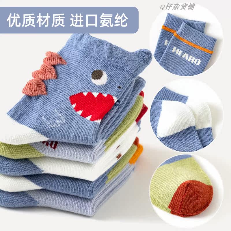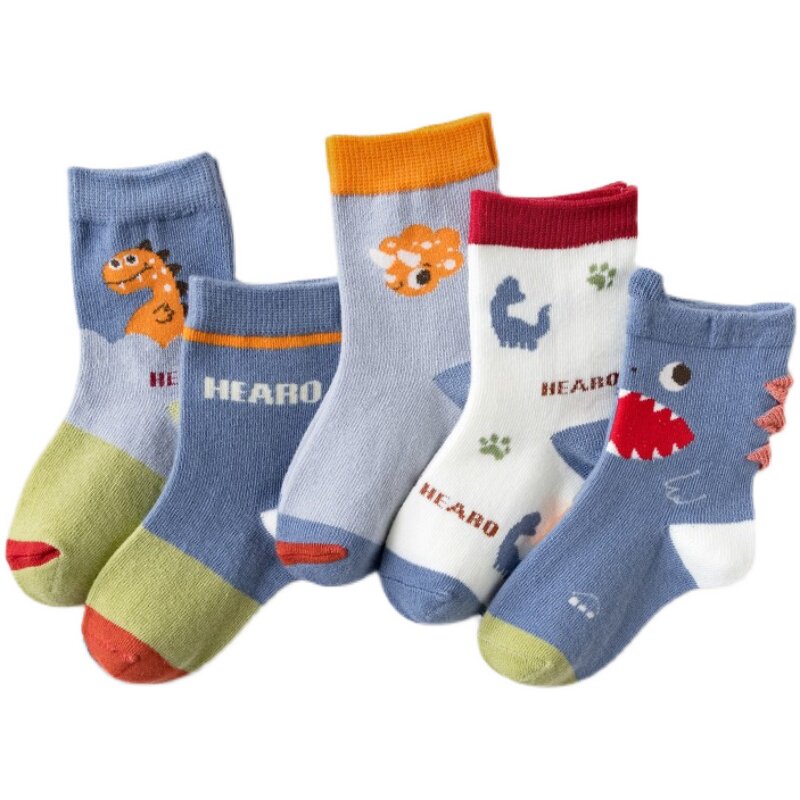 Children's socks cotton autumn and winter mid-tube socks Japanese and Korean cartoon big mouth dinosaur cute boy and girl baby five pairs