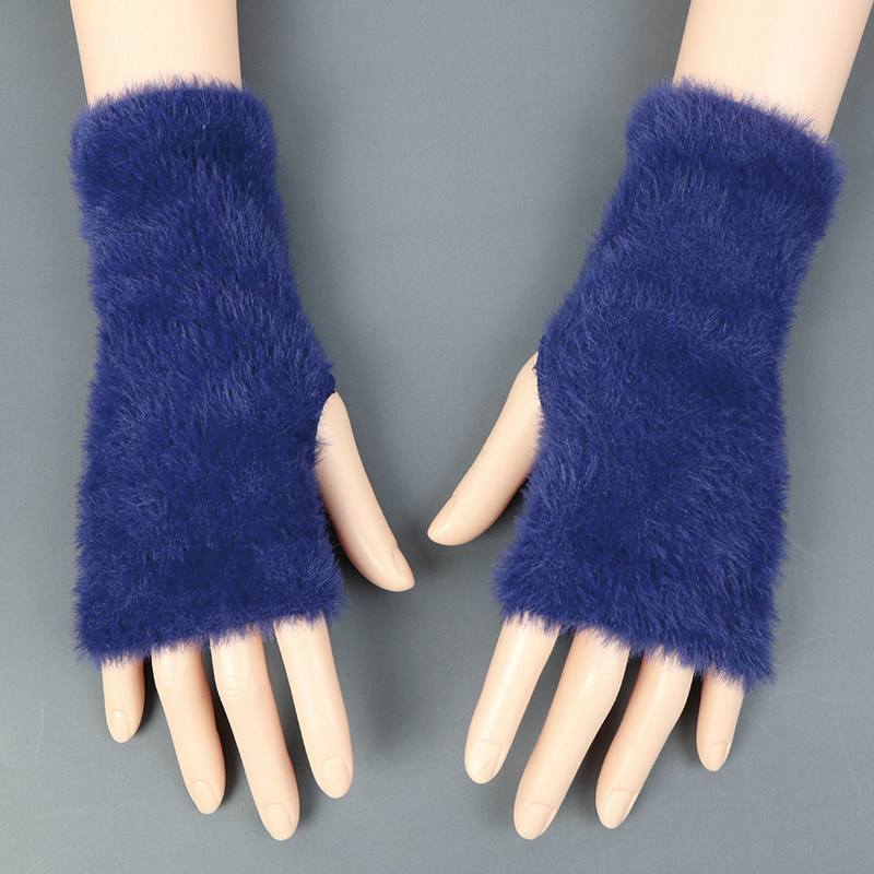 Half Finger Plush Gloves Female Winter Warm Plus Suede Knit Cute Hand Socks Half Cut Finger Touch Screen Student Anti-Chill Wrists-Taobao