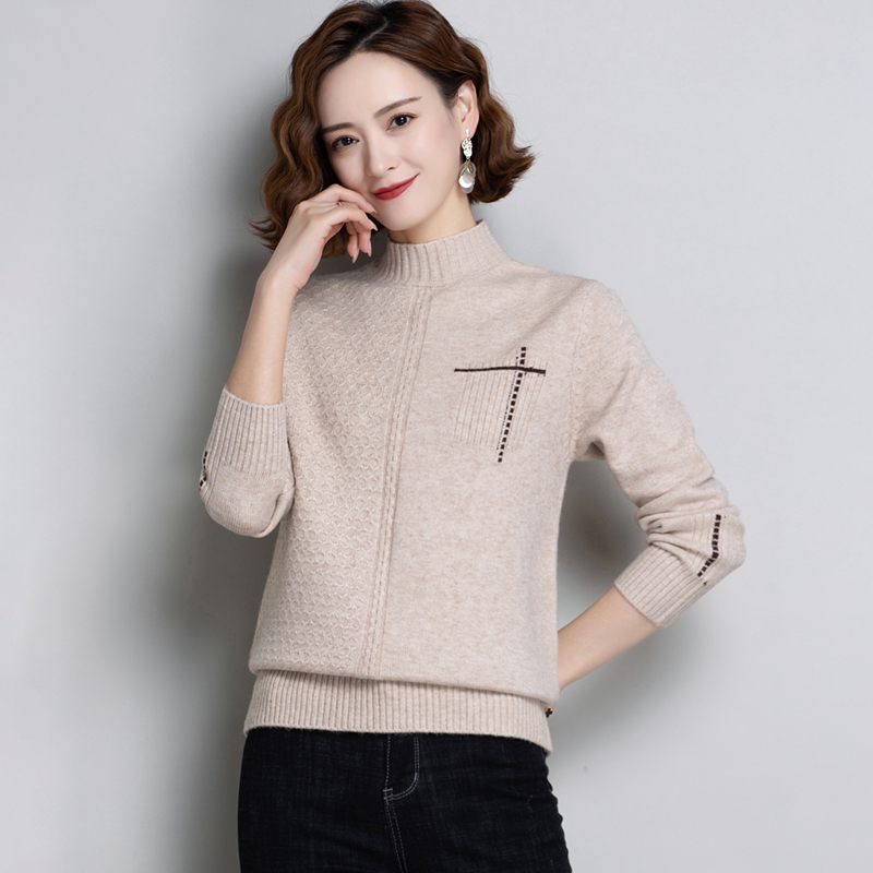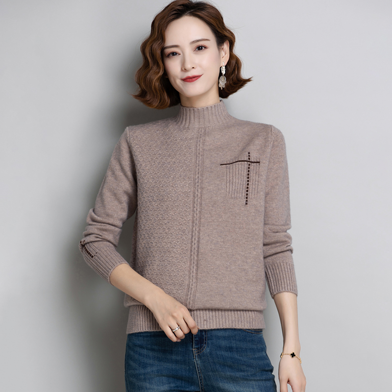 Ordos Cashmere Sweater Ladies Semi-Turtleneck Bottom Sweater Autumn and Winter Inner Pull pullover loose new cardigan
