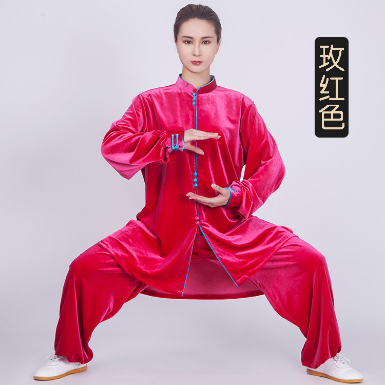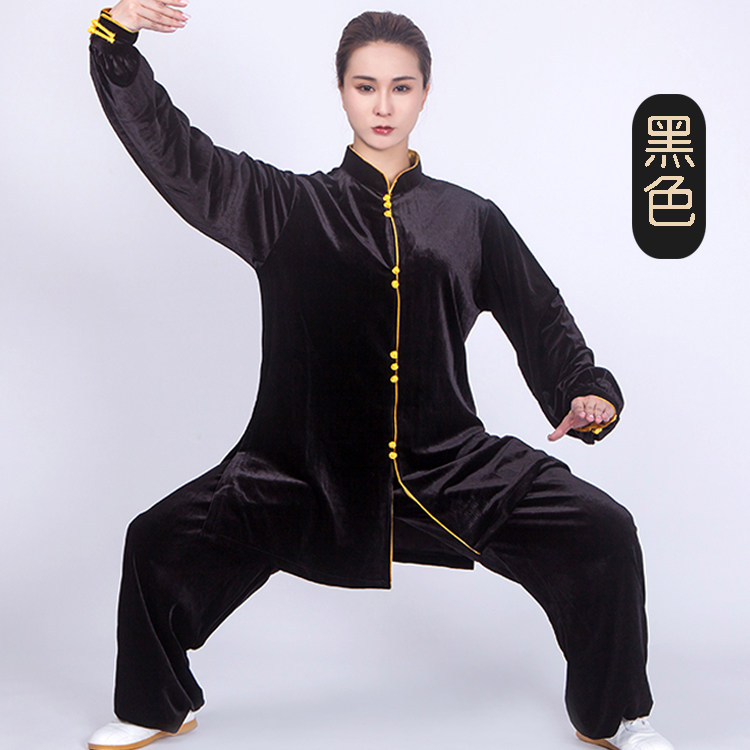 Tai chi clothing women's clothing 2021 new thickening South Korea gold velvet spring autumn and winter mid-length version of tai chi training clothing men me