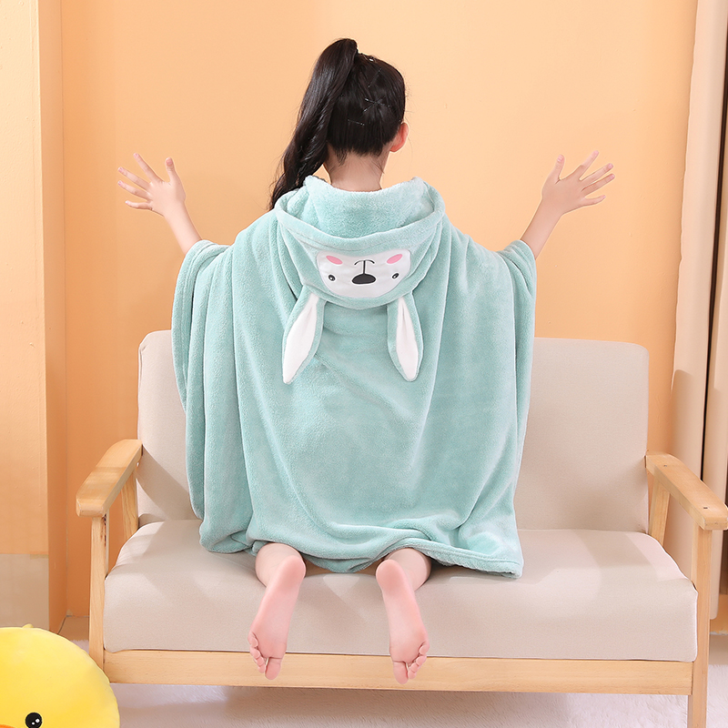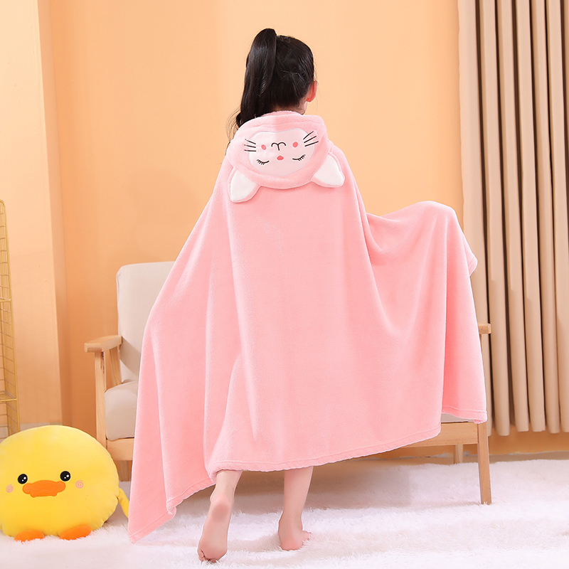 Thickened style cloak (0-4 years old) 70x140 pink cat thickened with cloak bath towels (0-4 years old) 70x140 shallow turquoise rabbit thickened cloak bath towels (0-4)