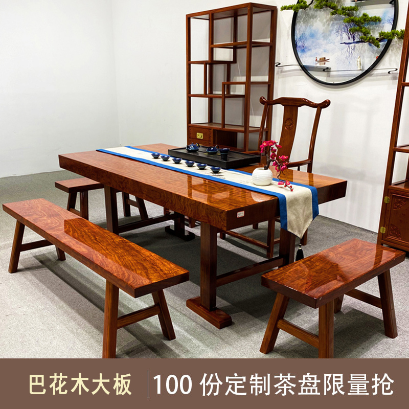 Bahua solid wood large board tea table log mahogany furniture boss desk Brazilian rosewood Chinese tea table dining table