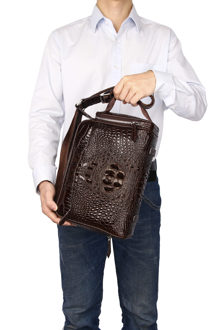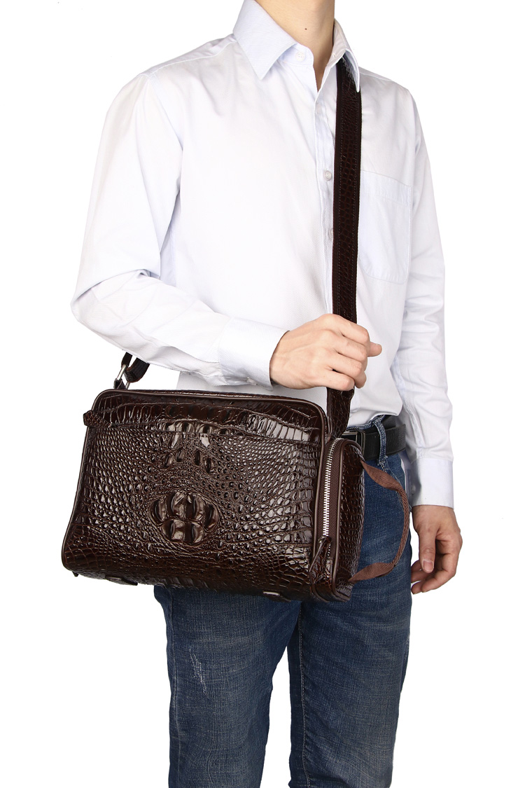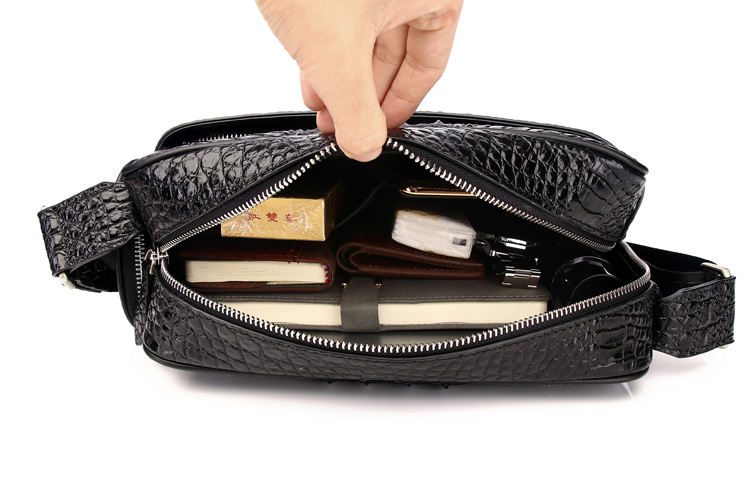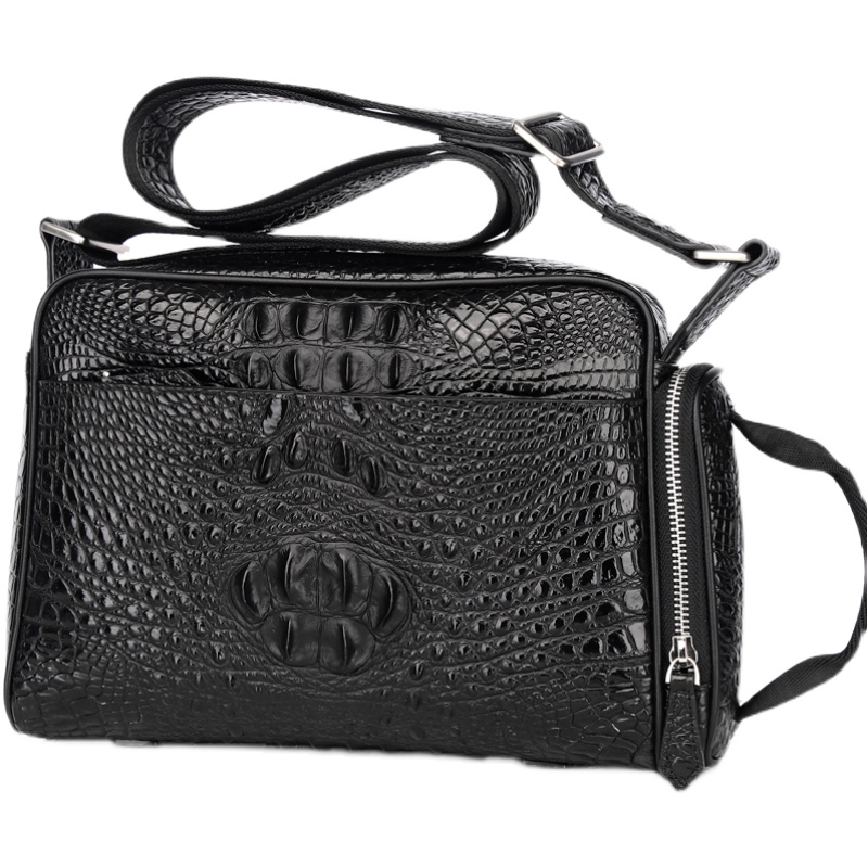 Thailand pure crocodile leather men's bag leather youth zipper large-capacity fashion European and American casual hand-held one-shoulder messenger bag