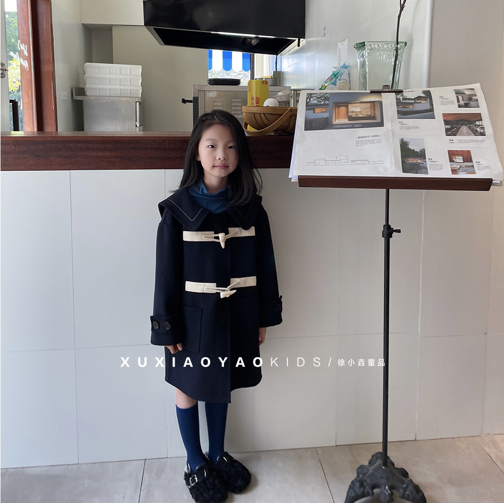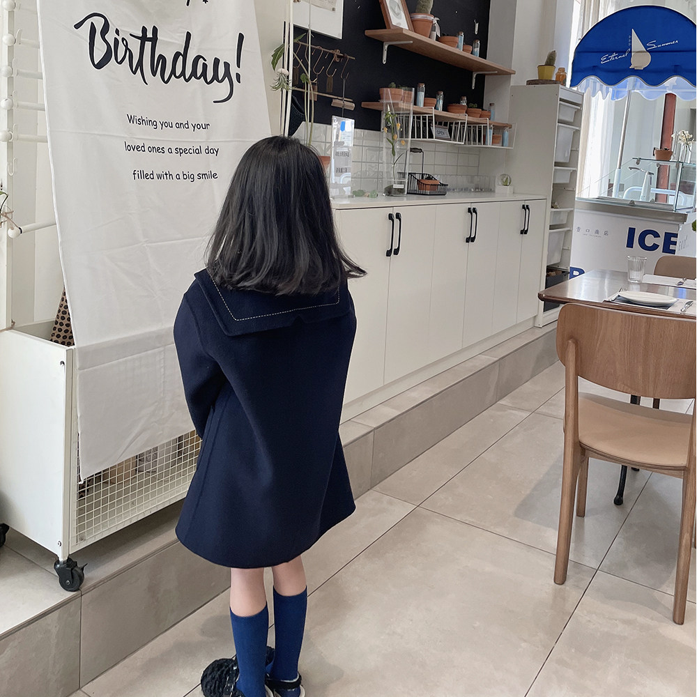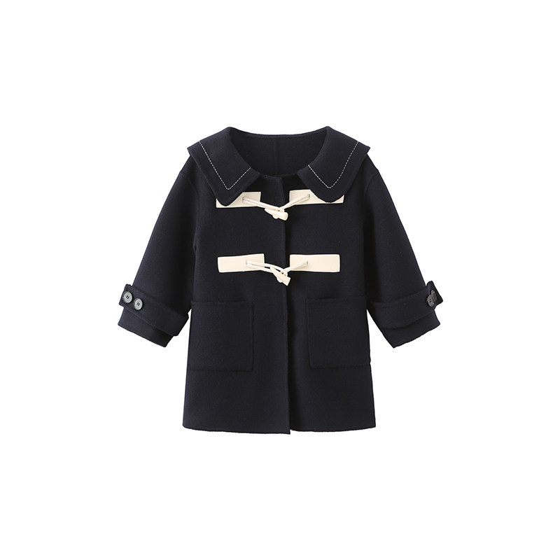 Handle wool hand double-sided cashmere coat bull corner button boys and girls retro-academy coat