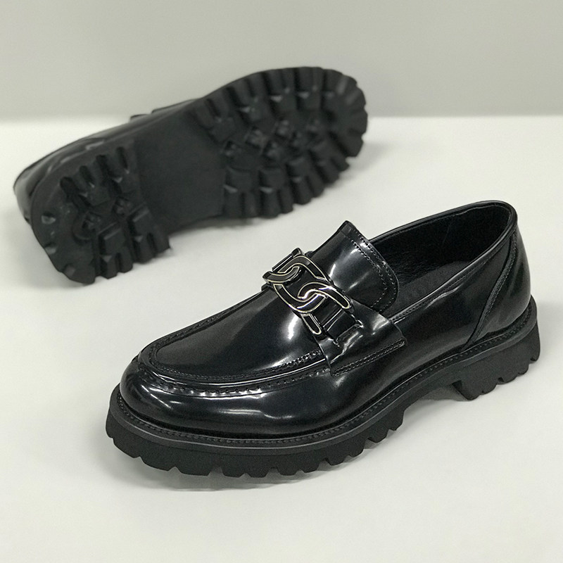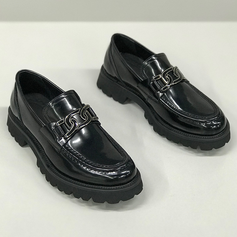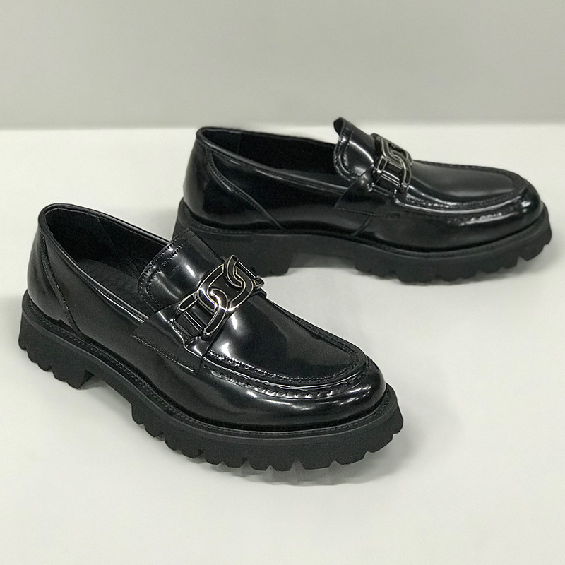 Peas shoes casual leather shoes thick-soled men's spring and autumn models with heel leather patent leather British one-step increase Gola blessing shoes