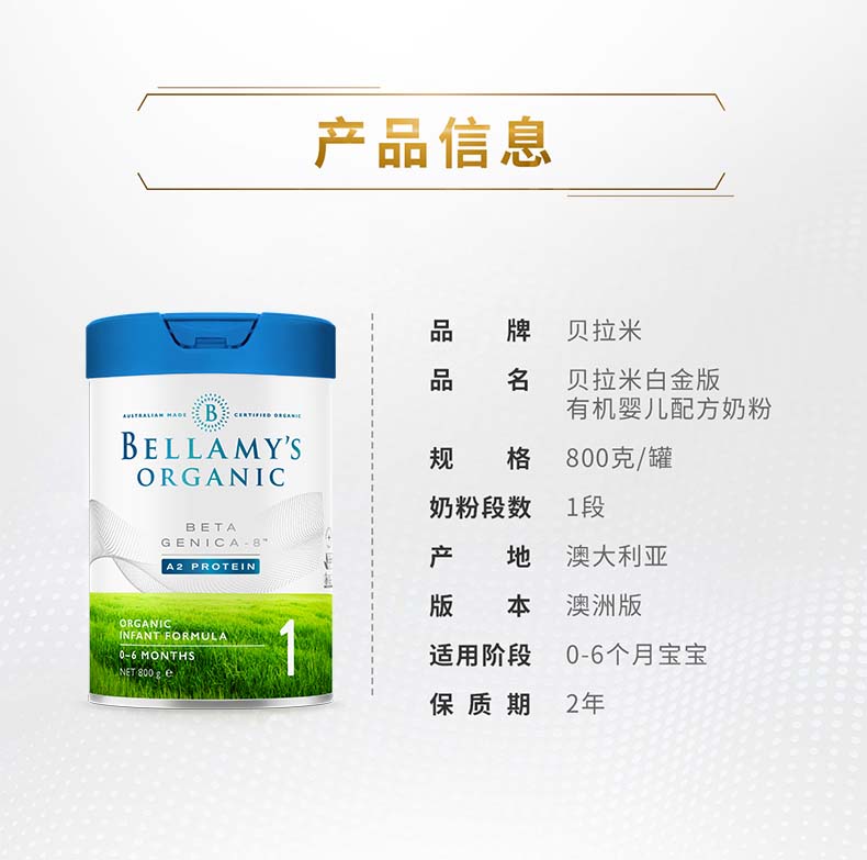 Platinum 1 paragraph Bellamy Organic A2 Early childhood Formula DHA Milk Powder for a section 800g Australian Original Loaded Imports with Two-section-Taobao