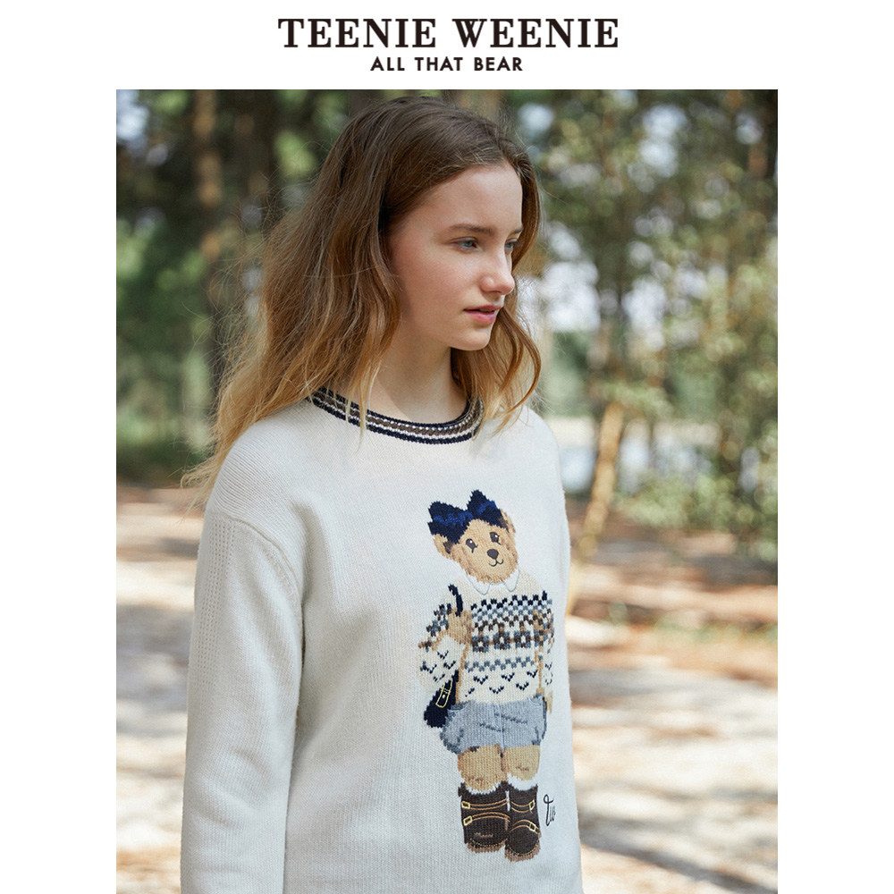 TeenieWeenie Small Bear Roll-collar Knitting Shirt College Wind Reduction and Han Edition