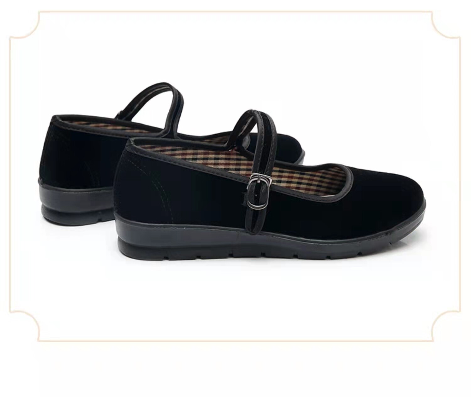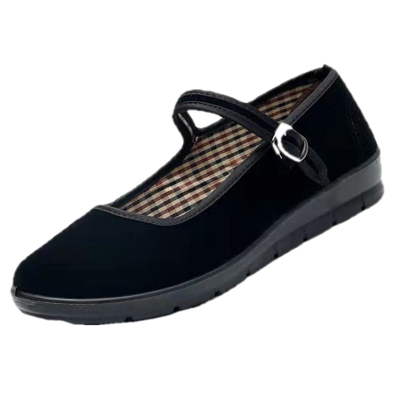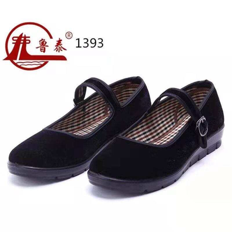 Lutai ladies black velvet cloth shoes work shoes gift shoes dance shoes spring and autumn shallow mouth Velcro square mouth shoes