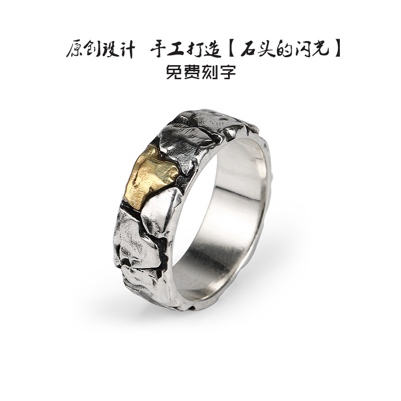 925 Pure Silver Original Handmade Forefinger Male Retro Personality Tide Man Small Crowddesign Women's Ring Texture Ornament Ring
