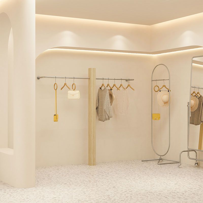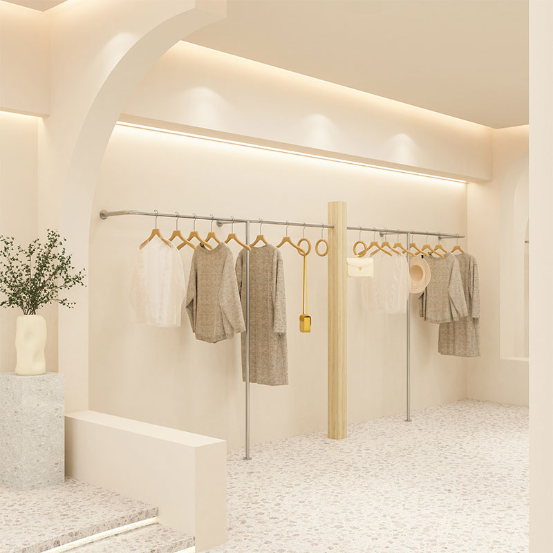 Clothing Shop Upper Wall Display Shelving Display Shelf Men And Women Fashion Shop Upper Wall Hung Hanger Wood Stainless Steel Frame