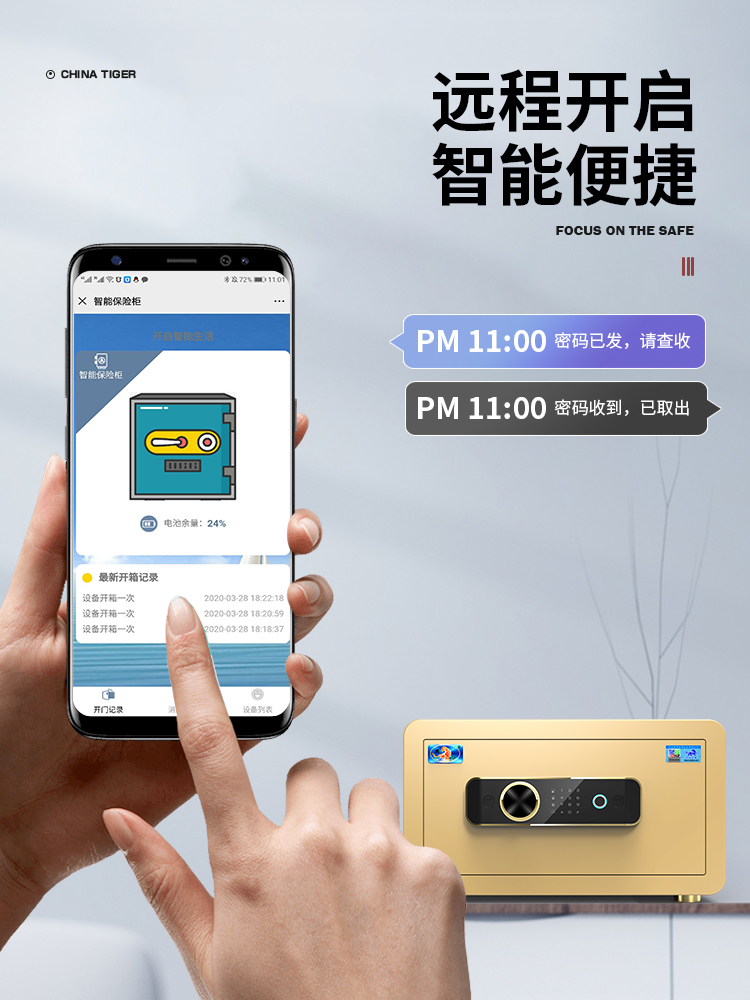 Tiger card safe Home Small safe deposit 22 22 35 45 headboard type head-in closet full steel anti-theft touch screen fingerprint electronic password office small safety-deposit box remember this computer storage cabinet-Taoba