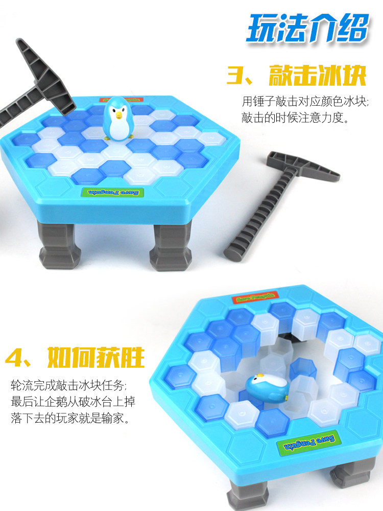 Ice tapping to save small penguin ice breaking toy trembling same boy smashing ice puzzle game parent-child table tour