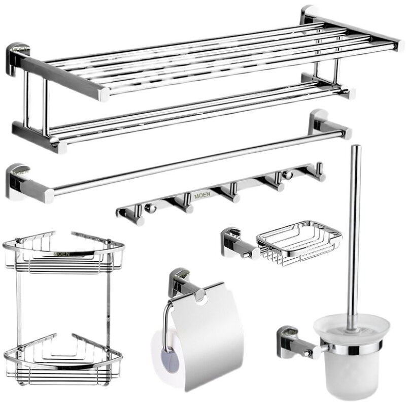 Four corners bath towel rack four corners 5 hooks bath towel rack high and low double pole parallel double pole single pole straight five hook paper towel holder soap net double cup holder single layer fan shape double layer silk basket towel ring toilet brush hair dryer rack set of five